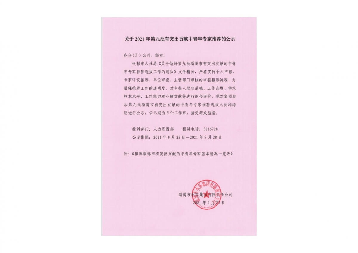 關(guān)于2021年第九批有突出貢獻(xiàn)中青年專(zhuān)家推薦的公示
