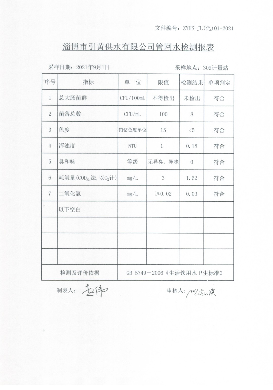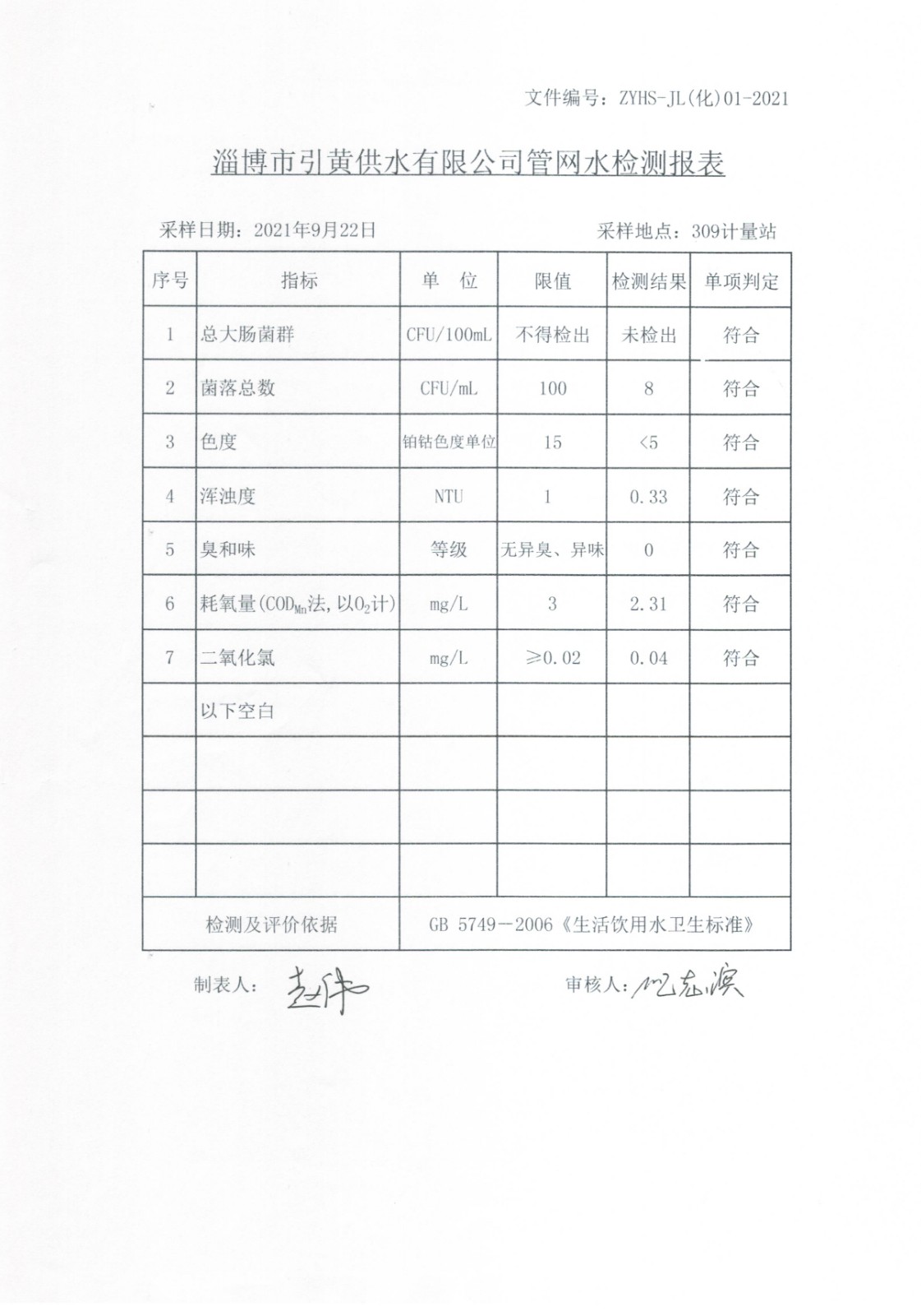 2021年9月水質月檢公示