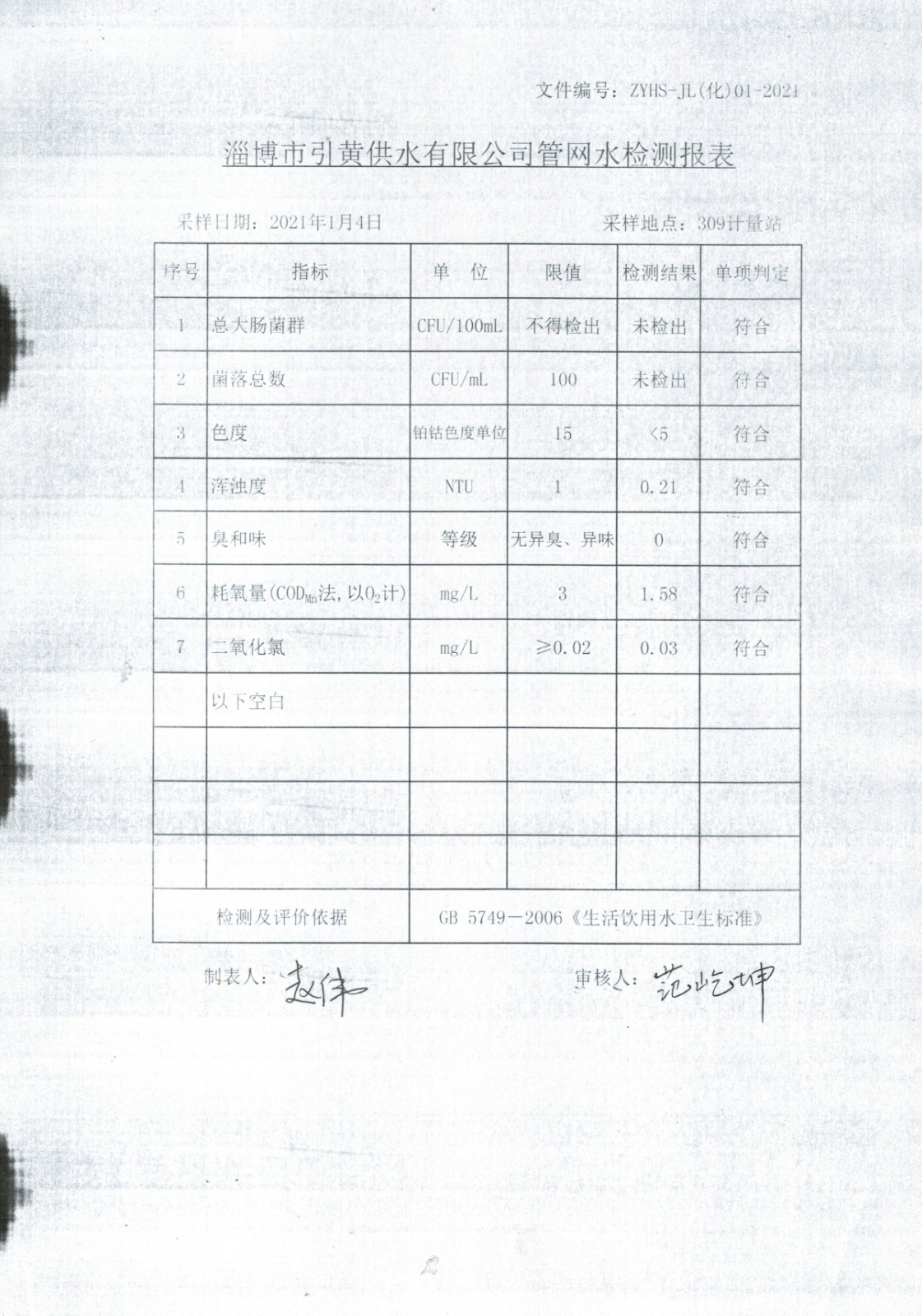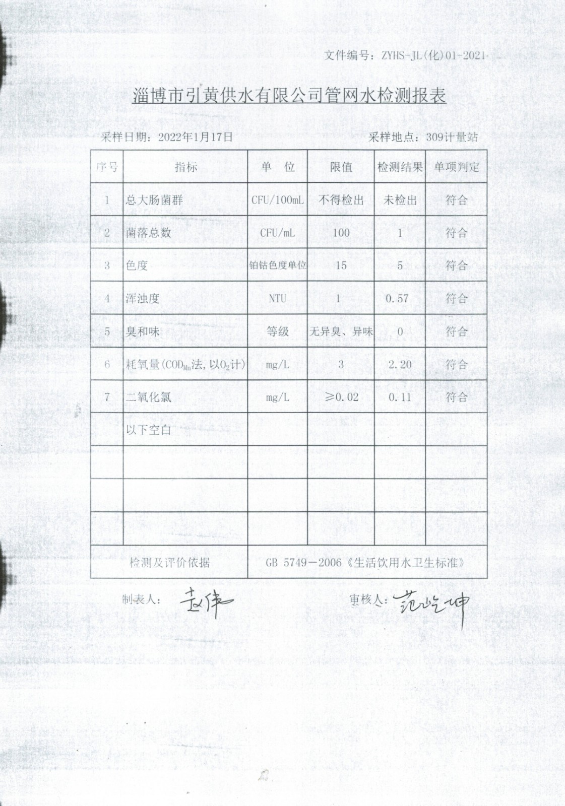 2022年1月水質(zhì)月檢公示 點(diǎn)擊數(shù):0次 發(fā)布時間:2022-02-08 17:00:55 生活飲用水-309計(jì)量站生活飲用水-配水廠生活飲用水-華電01月上管網(wǎng)水半月檢7項(xiàng)檢測匯總表01月下管網(wǎng)水半月檢7項(xiàng)檢測匯總表福林泵房灃水出廠水河西泵房南定出廠儷園小區(qū)世紀(jì)花園四砂生活區(qū)體育中心